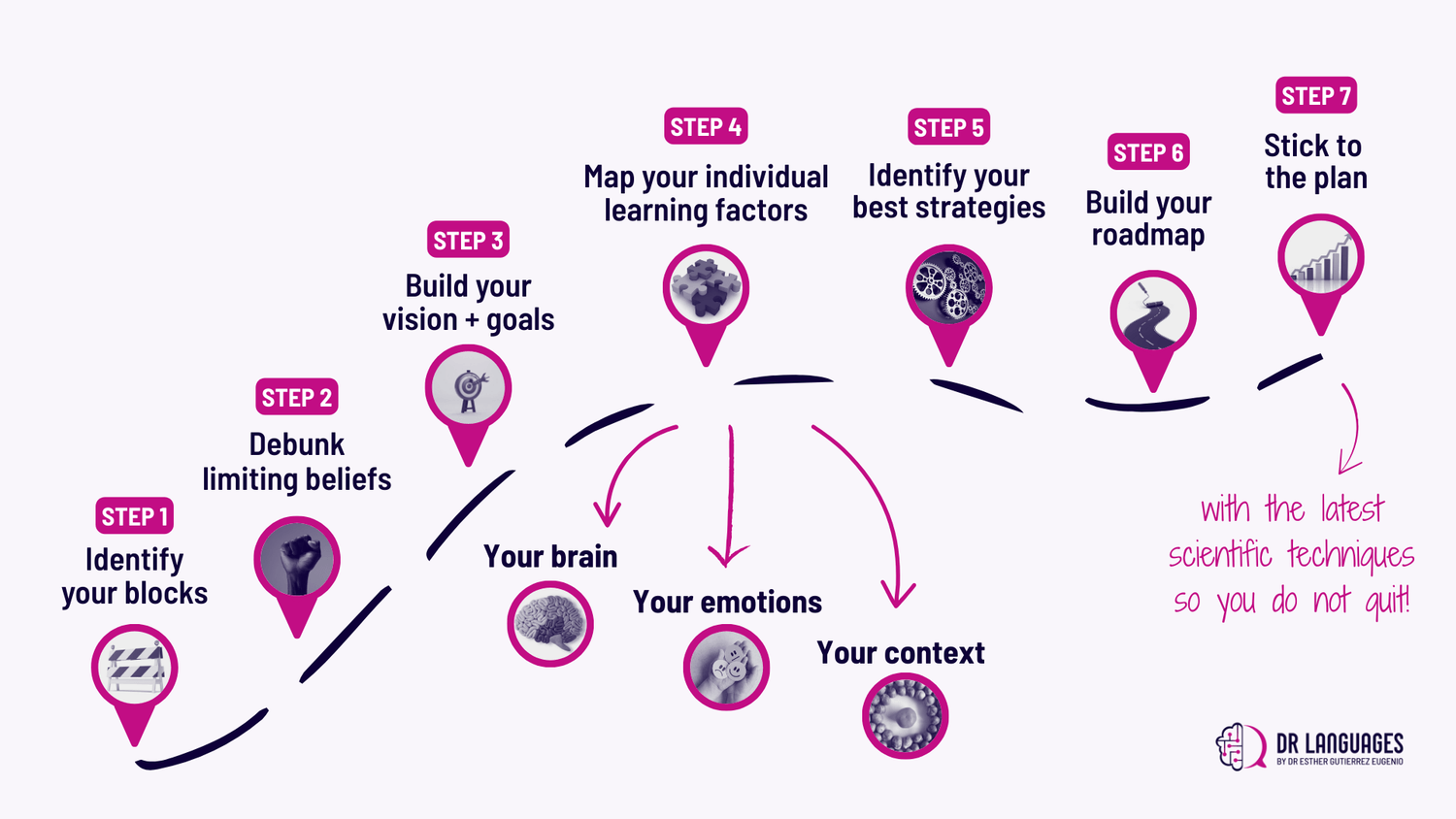 The Lab is ongoing insights and support, on-demand answers, and community. The Language Results Accelerator is my intensive 8-week coaching programme where we work closely together to develop your personalised language learning roadmap - and make sure you stick to it in the long term. After the 8-week Accelerator programme, you get 12 months' access to the Lab so you can count on my ongoing support as you start implementing your plan.